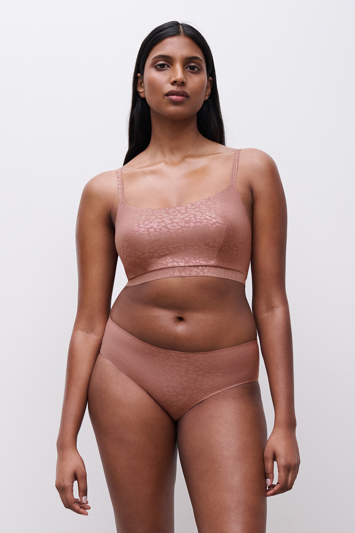Barely There, Beautifully Bold: Some lingerie is made to be seen. Others are designed to disappear. The Chantelle SoftStretch Full Brief in Pink Leo Shimmer does both—giving you the perfect balance of lightweight comfort and a chic, understated print. Designed from Chantelle’s innovative SoftStretch fabric, this full brief molds to your shape, offering a flexible, second-skin fit that moves with you.